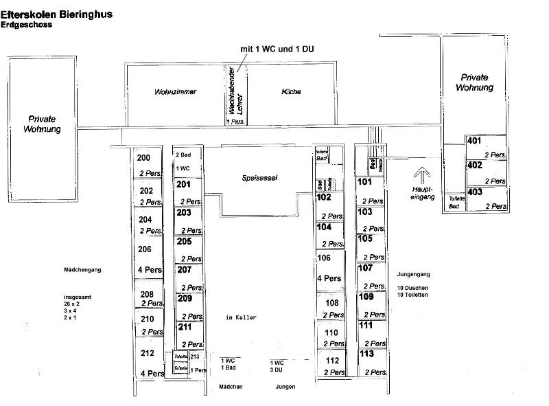 1 Aufenthaltsraum mit Billard im Keller (30 qm), 1 Speisesaal (140 Personen) 1 großer Aufenthaltsraum (120 Personen). 1 weiterer Aufenthaltsraum in der neuen Sporthalle.