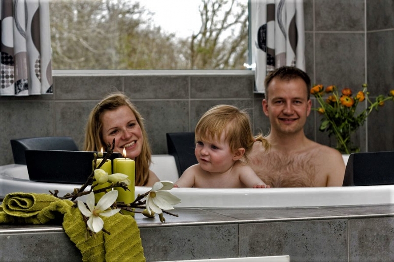Im Haus ist die hauseigene Badelandschaft ein Blickfang.
