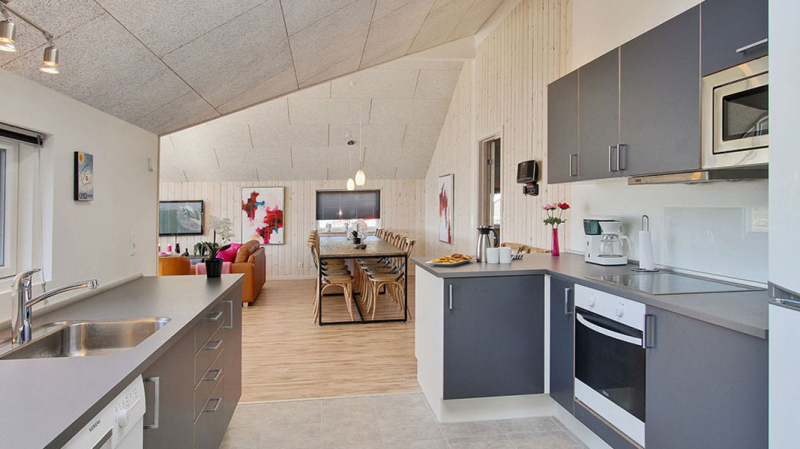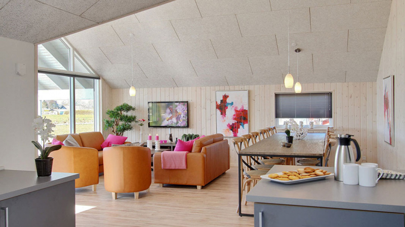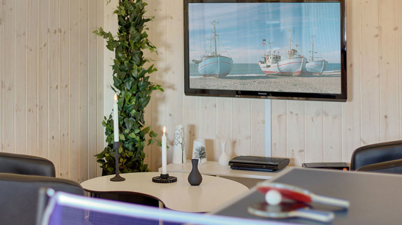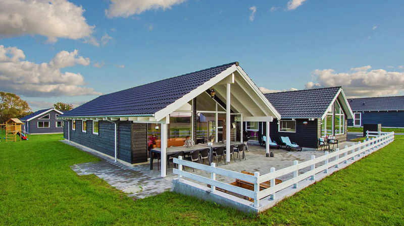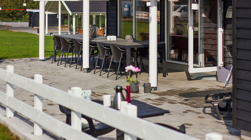 Draußen wartet eine großzügig angelegte Terrasse auf die sonnenbegeisterten Urlauber, die in bequemen Gartenmöbeln Platz nehmen können, während die kleinen Gäste in der Sandkiste buddeln oder auf den Schaukeln dem dänischen Himmel ein Stückchen näher kommen können.