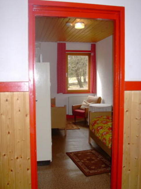 Im Erdgeschoss des Gruppenhauses sind die Küche, ein Sanitärraum, ein Speise-/Aufenthaltsraum und eine angebaute Veranda untergebracht.Im Obergeschoss sind 3 Zweibettzimmer, 1 Dreibettzimmer, ein Vierbettzimmer und ein Sechsbettzimmer mit Mezzanine, auf der es noch drei weitere Betten gibt.