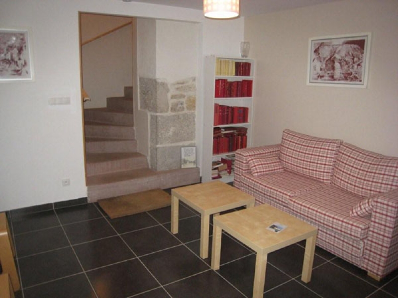 im Erdgeschoss - eine Eingangshalle mit Sitzecke, - ein Schlafzimmer mit 2 Betten (90 cm breit) mit Zugang zum Hof, Bad mit WC,