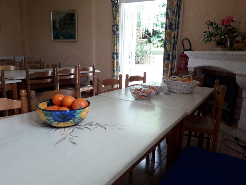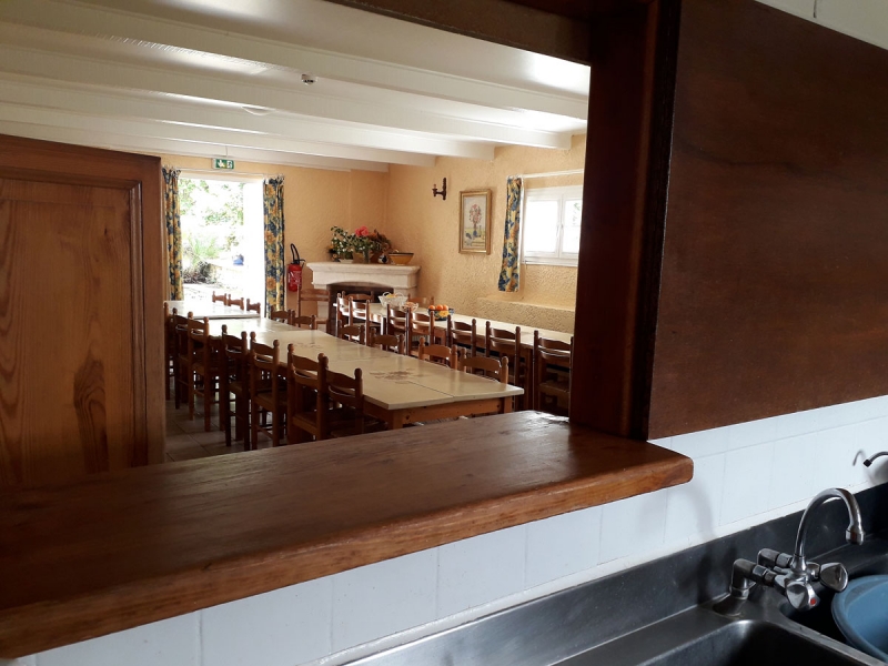 Der Speiseraum hat Platz für bis zu 50 Personen und hat angrenzend eine Terrasse mit Gartenmöbel. Die Gruppe kocht in