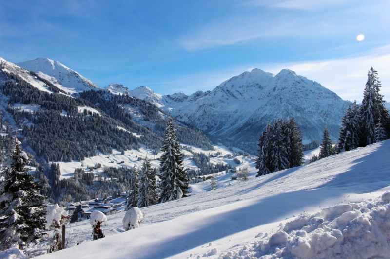 Direkt in den Allgäuer Alpen, im Herzen des Kleinwalsertals, liegt der kleine Ort Hirschegg.