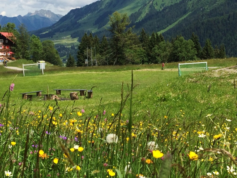 Gruppenunterkunft in Österreich, Allgäuer Alpen, 1400 M hoch, Vorarlberg, Bezirk Bregenz in Ort Hirschegg im Kleinwalsertal. Kleinwalsertal ist nur von Deutschland aus zu erreichen, Spielwiese zum Liegen, Fußball, Volleyball, an einer Skipiste, Langlauf, Tischtennisplatte, Kicker, großes Grundstück, Wandern, Klettern, Fahrrad fahren, Grill, Lagerfeuerstelle, Sauna und Whirlpool (Gebühr), gut ausgestattete Küche, freies Busfahren im Tal und vieles mehr ...